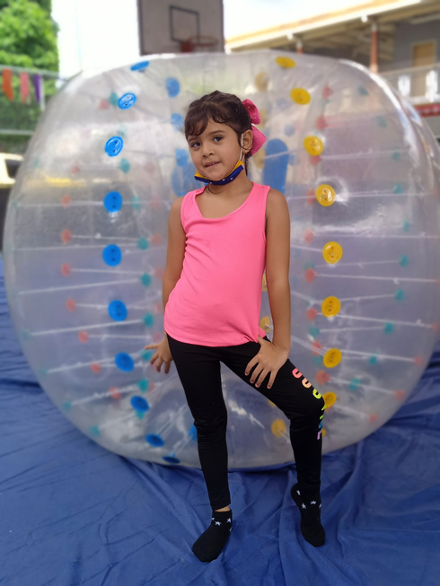 Antes de comenzar a usar los bumperballs los niños reciben instrucciones